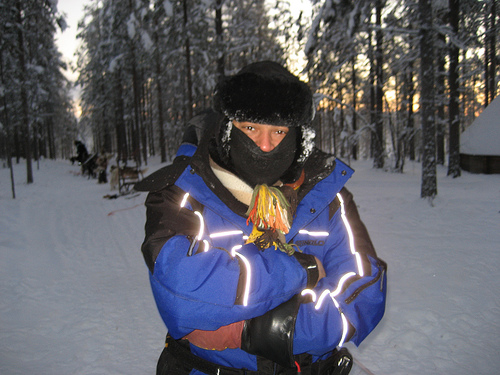 Es geht los, bei Minus 26 Grad Celsius. Über Nacht ist das Quecksilber tatsächlich tief in den Keller gegangen. Mit Milla und mir fährt Mark, ein Stockbroker aus London, der wegen eines Jobwechsels in der City erzwungender Maßen eine dreimonatige Pause einlegen muss. Wo könnte man eher eine Pause machen als in Lappland?
