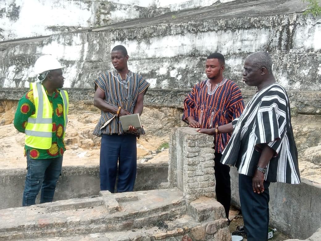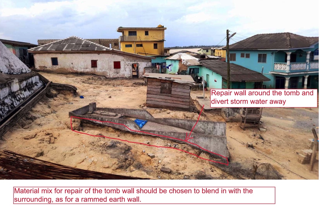 Ohne Rosemarys unermüdlichen Einsatz vor Ort in Shama, wäre die Umsetzung der Notrettung der Grabanlage nicht möglich gewesen. Denn wer Ghana kennt weiß, dass alles was mit Gräbern zu tun hat, von den traditionellen Führern oder Chiefs abhängt. Ohne diese geht gar nichts. Selbst keine Grabrettung. Durch Rosemarys Einsatz konnten die Rettungsmaßnahmen in der letzten Septemberwoche abgeschlossen werden. // Without Rosemary’s tireless efforts on the ground in Shama, the emergency rescue of the tomb would not have been possible. Because anyone who knows Ghana is cogniscent of the fact, that everything to do with graves depends on the good will of traditional leaders or chiefs. Without them, nothing works. Not even to save the tomb of a great philosopher. Thanks to Rosemary’s efforts, the rescue work was completed in the last week of September.